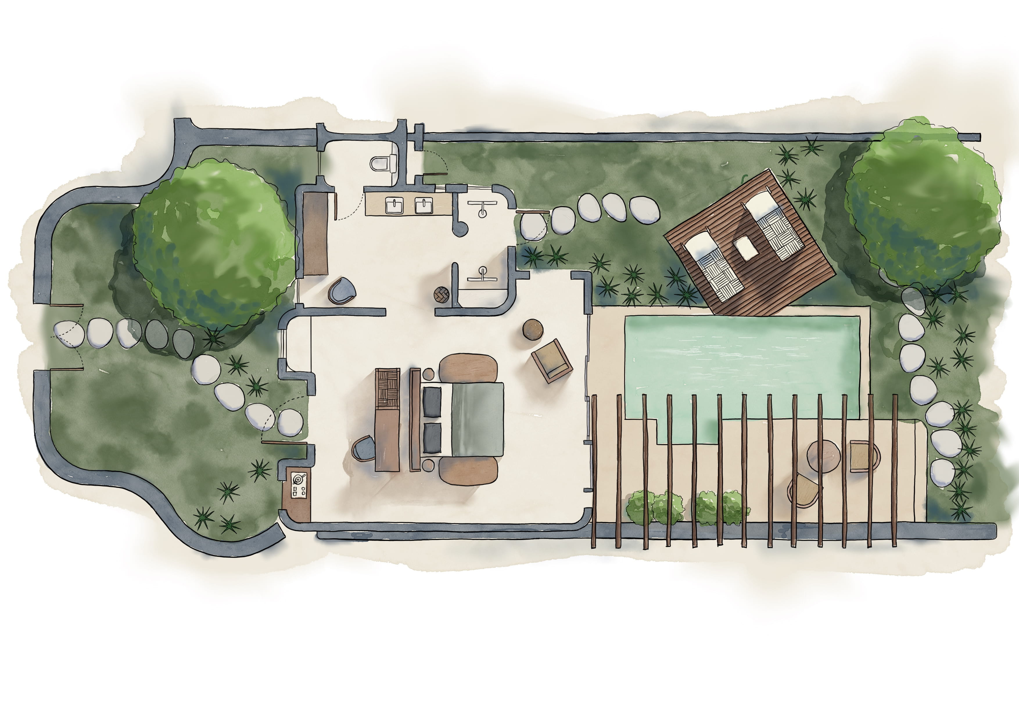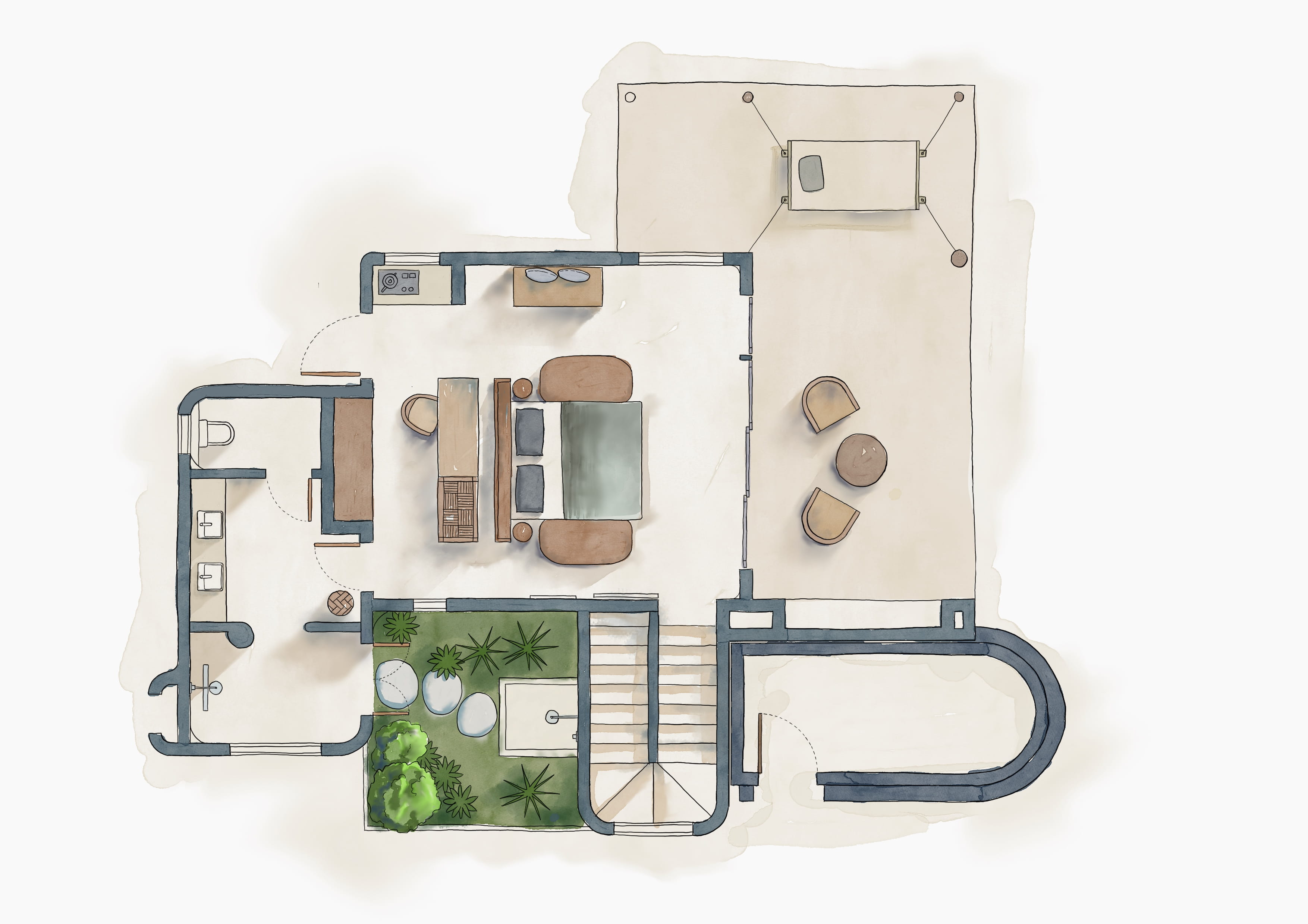 Choose it for... the infinity pool you can access directly from the terrace, its cocoon-like atmosphere, and the outdoor shower.